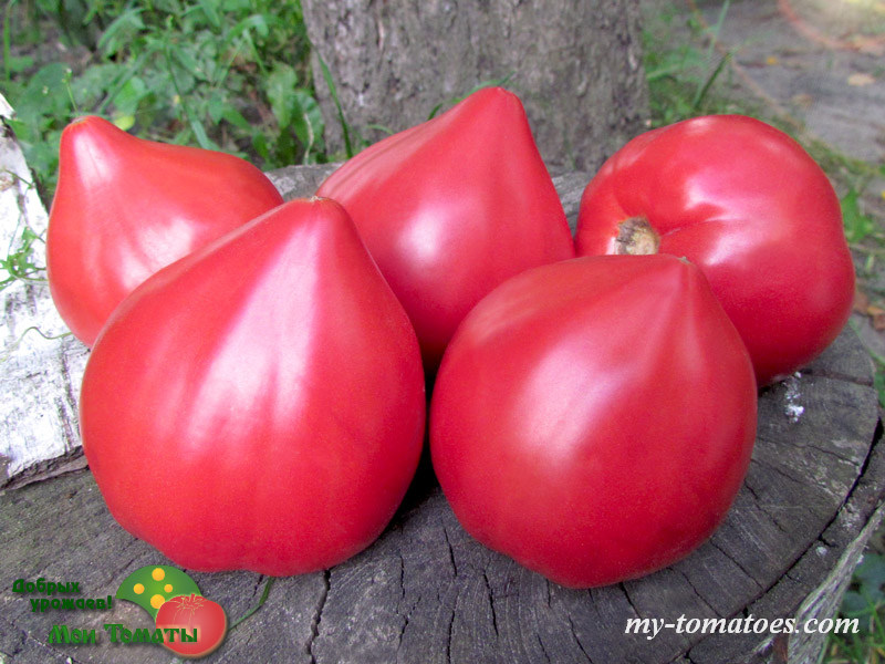 Среднеспелый. Растение высотой до 1,2-1,4м; формируется в 2-3 стебля. Плоды сердцевидной формы, малиново-розовой окраски, без пятна, гладкие, мясистые, малосеменные, превосходного товарного вида, массой до 400г и более.