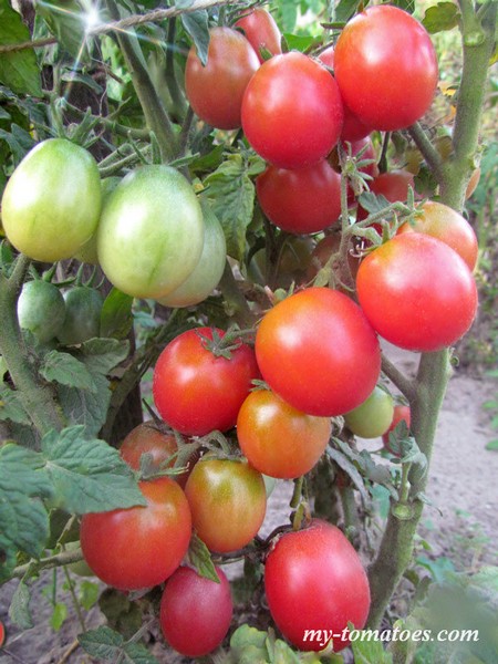 Среднеранний, очень урожайный сорт. Куст высотой 60-70см, лист морщинистый, обычного типа. Образует множество черри-плодов овальной формы, жемчужно-розовой окраски, умеренно плотных и лёжких, массой 15-25г. Томаты не водянистые, сладкие и очень вкусные. Отлично подходит для салатов и закусок.