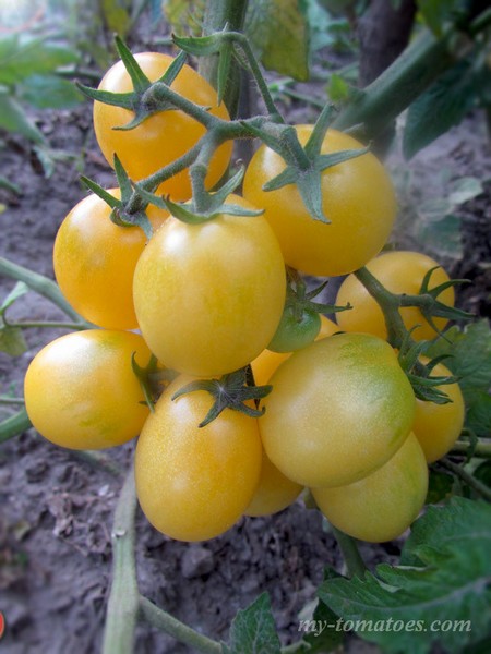 Среднеранний (70 дней), очень урожайный сорт черри. Кусты высотой 70-80см, с пышной морщинистой листвой картофельного типа. Дают высокие урожаи почти круглых, светло-жёлтых помидоров черри весом 10-20г со сбалансированным сладким вкусом. Отлично подходят для приготовления салатов и закусок из помидоров.