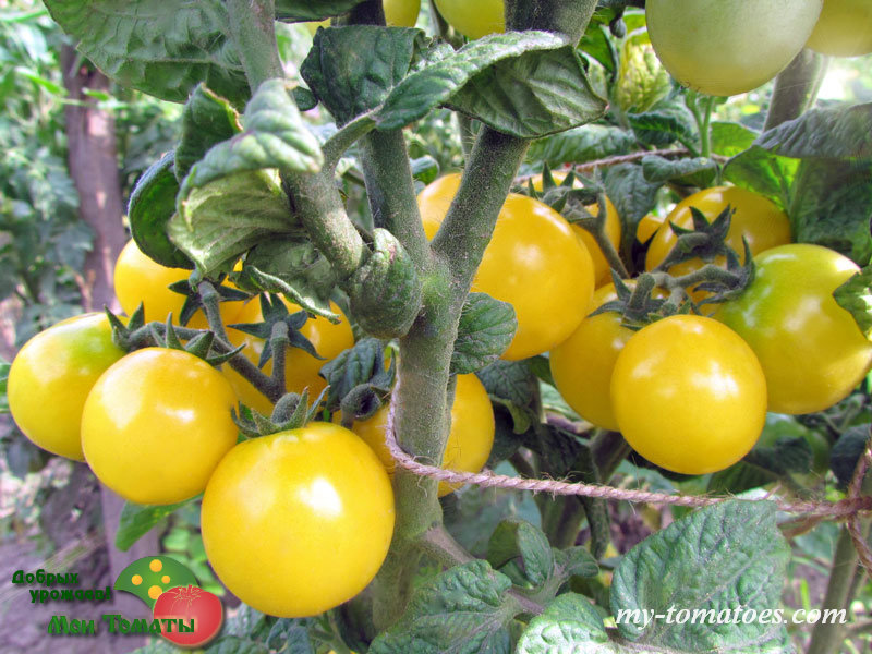 Среднеранний (70 дней), очень урожайный сорт черри. Кусты высотой 70-80см, с пышной морщинистой листвой картофельного типа. Дают высокие урожаи почти круглых, светло-жёлтых помидоров черри весом 10-20г со сбалансированным сладким вкусом. Отлично подходят для приготовления салатов и закусок из помидоров.