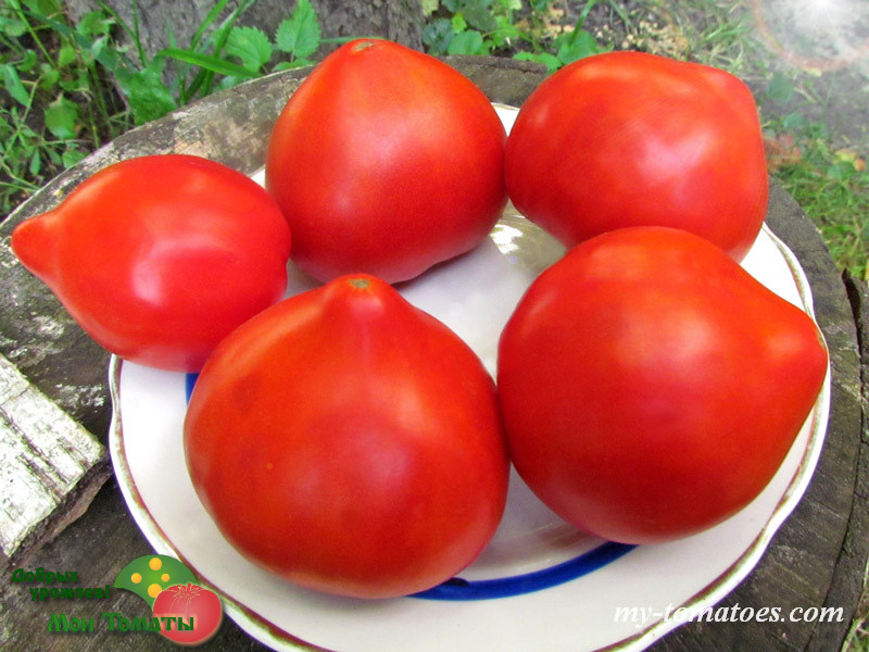 Очень урожайный гном с морщинистыми листьями. Срок до начала плодоношения 80 дней (среднеспелый). Растения высотой 70см, производят большое количество плодов очень красивой сердцевидной формы, массой 100-180г. Плоды очень мясистые, плотные, имеют насыщенный ало-красный цвет, плотную структуру и богатый, хорошо сбалансированный вкус. Особенно хороши для приготовления томатной пасты, соуса.