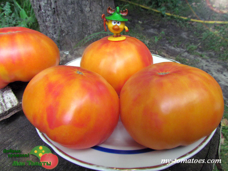 Недавний сорт, получен скрещиванием «Lucky Cross» и «Dwarf Russian Swirl». Среднеспелый, урожайный. Куст высотой до 1м, лист обычного типа, морщинистый. Плоды крупные и красивые, плоскокруглой формы, с пышными плечиками, оранжевого цвета с малиновыми разводами, массой до 300г и более. Обладают довольно плотной и сочной мякотью, с желтыми и красными прожилками, очень вкусные и ароматные.